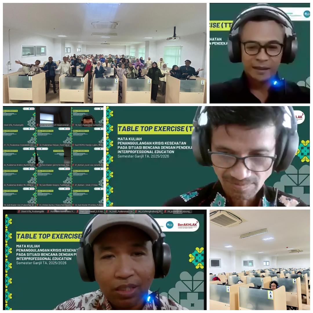 Pusat Pengembangan Pendidikan (Pusbangdik) Poltekkes Kemenkes Yogyakarta melaksanakan kegiatan Table Top Exercise (TTX) sebagai bagian dari mata kuliah Penanggulangan Krisis Kesehatan dan Bencana (PKKB) pada Sabtu, 25 Oktober 2025. Kegiatan yang diselenggarakan secara daring melalui Zoom Meeting ini bertujuan meningkatkan pemahaman mahasiswa mengenai mekanisme koordinasi dan respons dalam situasi darurat kesehatan.