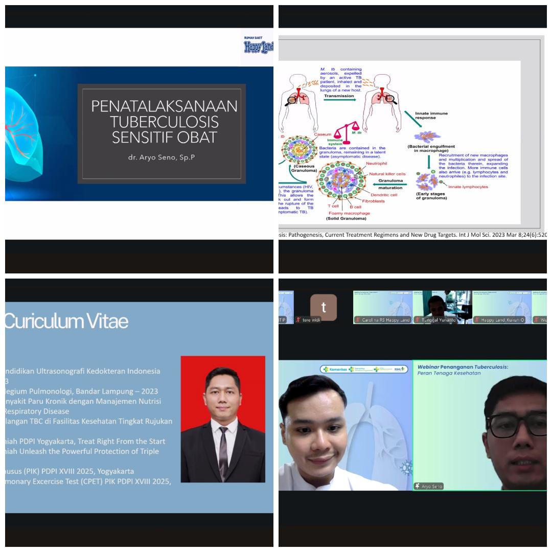 Kegiatan dibuka secara resmi oleh Direktur RS Happy Land Medical Center, dr. Gusti Raditya K., yang dalam sambutannya menyampaikan bahwa webinar ini merupakan langkah penting dalam upaya meningkatkan pemahaman dan keterampilan tenaga kesehatan dalam penanganan TBC.